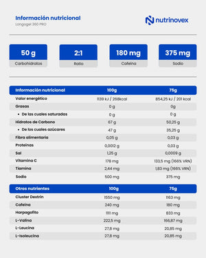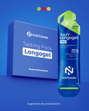 Longogel de Nutrinovex es la nueva formulación de nuestro gel energético más potente, ahora con 50g de carbohidratos, 180mg de cafeína y 375mg de sodio por unidad.